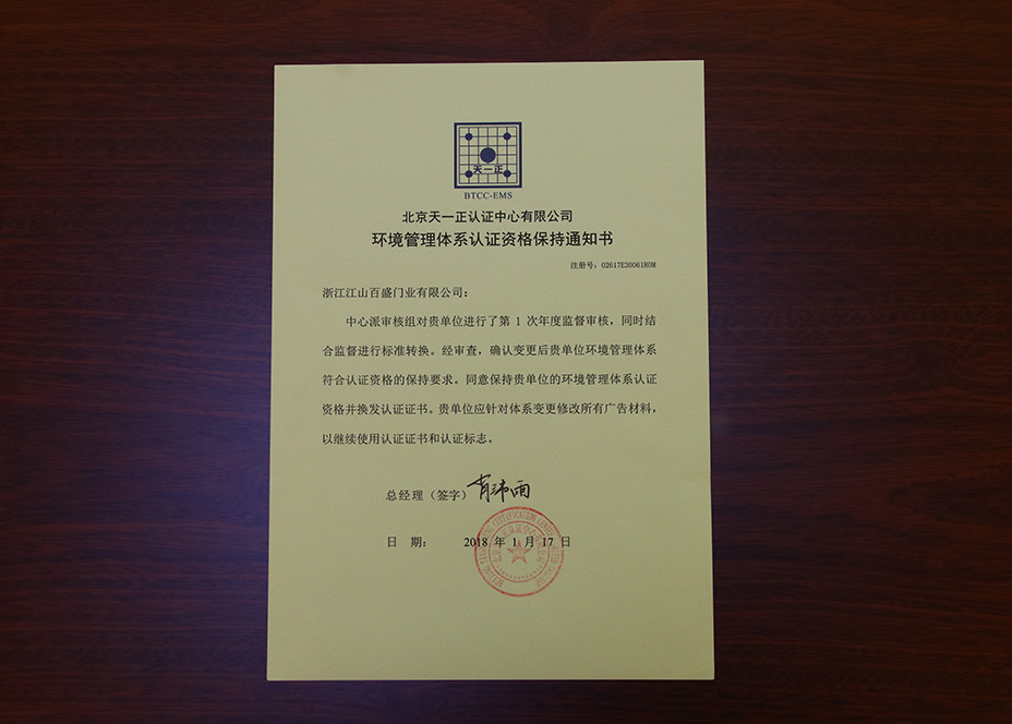 環(huán)境管理體系認(rèn)證資格保持通知書