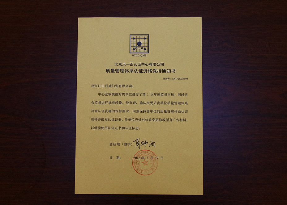 質(zhì)量管理體系認(rèn)證資格保持通知書